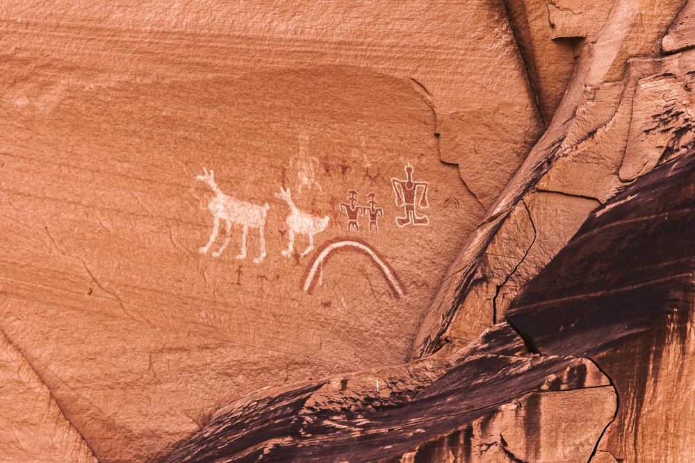 Another significant archaeological site is Mummy Cave, the largest ancient Puebloan village preserved in the canyon. Situated 300 feet above the canyon floor, this complex contains close to 70 rooms. The east and west alcoves contain living and ceremonial spaces, and some walls still display their original white and pale green plaster decorations.