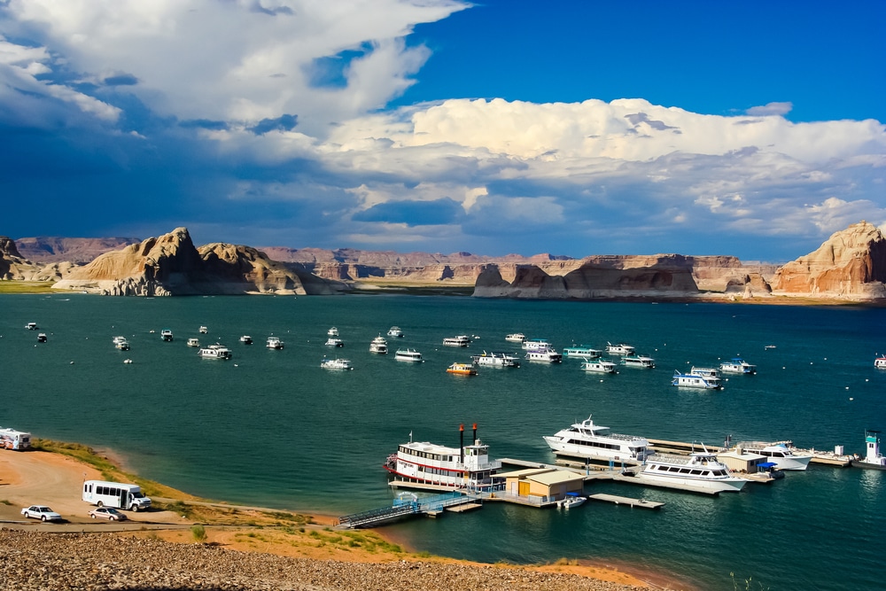 The lake features several well-maintained boat launch facilities across its length. The most active center for boat excursions is Wahweap Marina near Page, Arizona, though several other marinas and launch points exist throughout the lake. Bullfrog Marina serves as the primary northern access point for Utah visitors. Boat ramps at Antelope Point, Halls Crossing, and Hite (when water levels permit) provide additional access points.